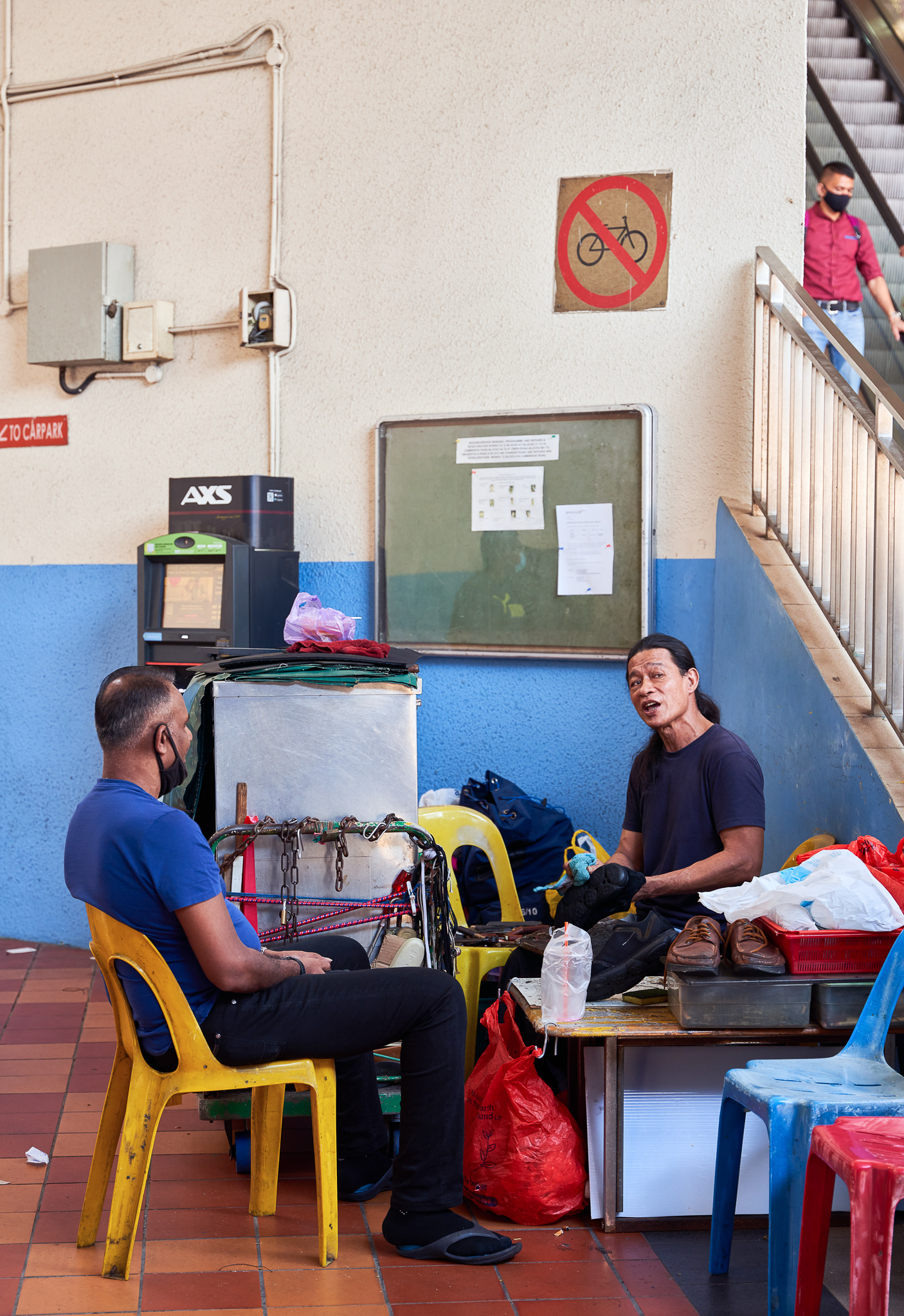 A shoe-repairman at work outside the Tekka Market, Little India, Singapore