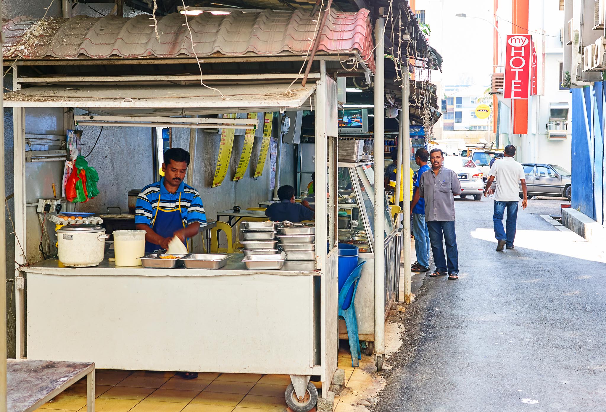 A cook preparing parota at the roadside food stall, Brickfields, Kuala Lumpur, Malaysia