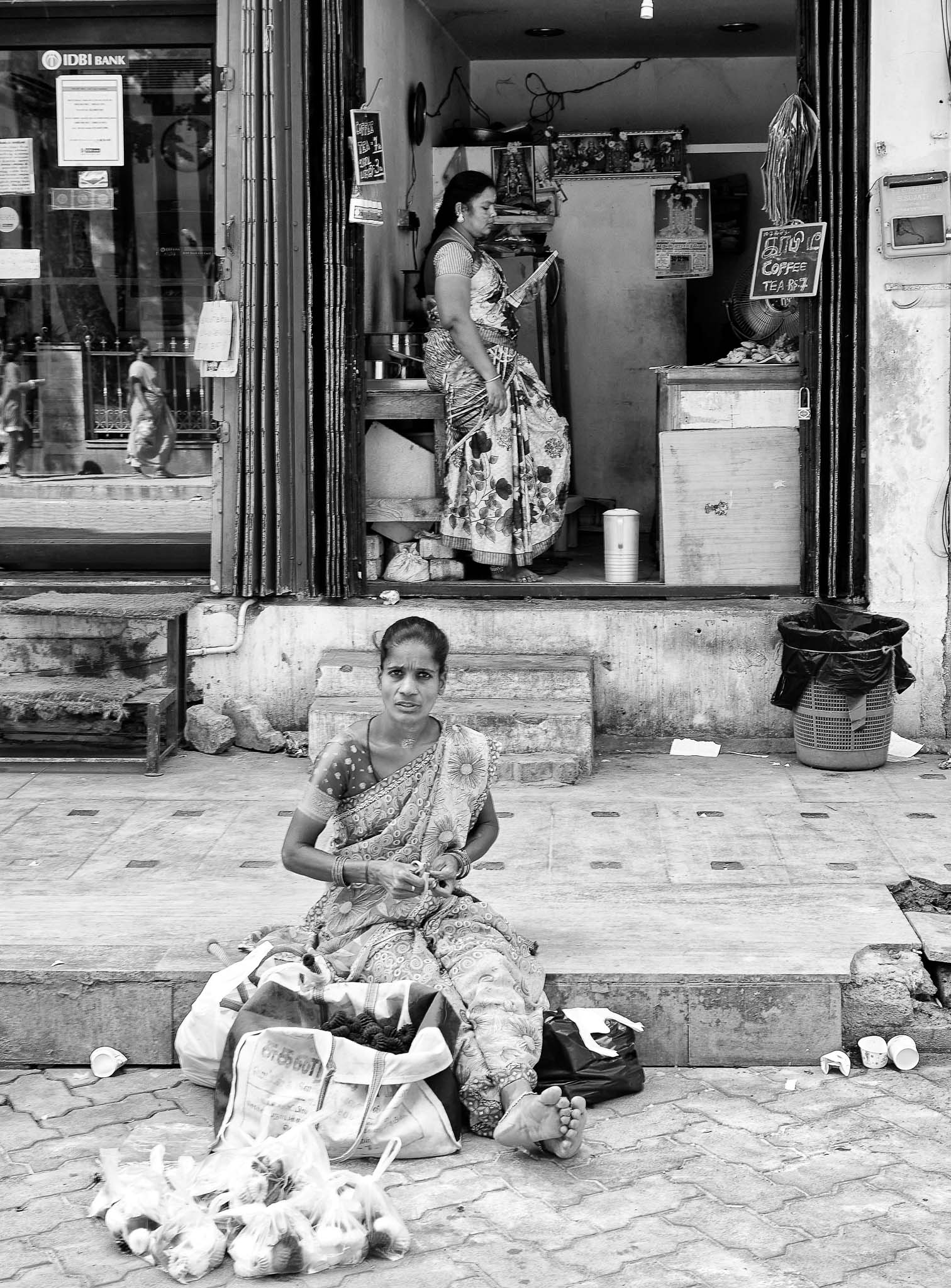 She would have hoped to sell the entire bag before end of the day, I guess. Woman in the background was at her tea stall, reading a paper.