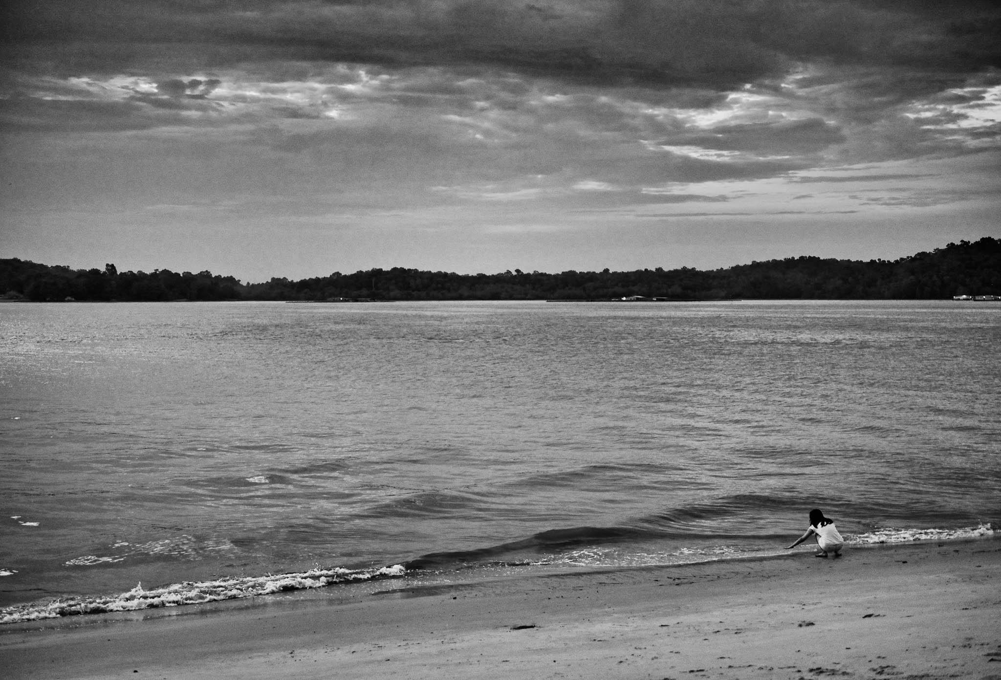 Sunrise over the confluence of three oceans (Bay of Bengal, Arabian Sea and Indian Ocean) behind the Thiruvalluvar Statue and Vivekananda rock, Kanyakumari, Tamil Nadu, India
