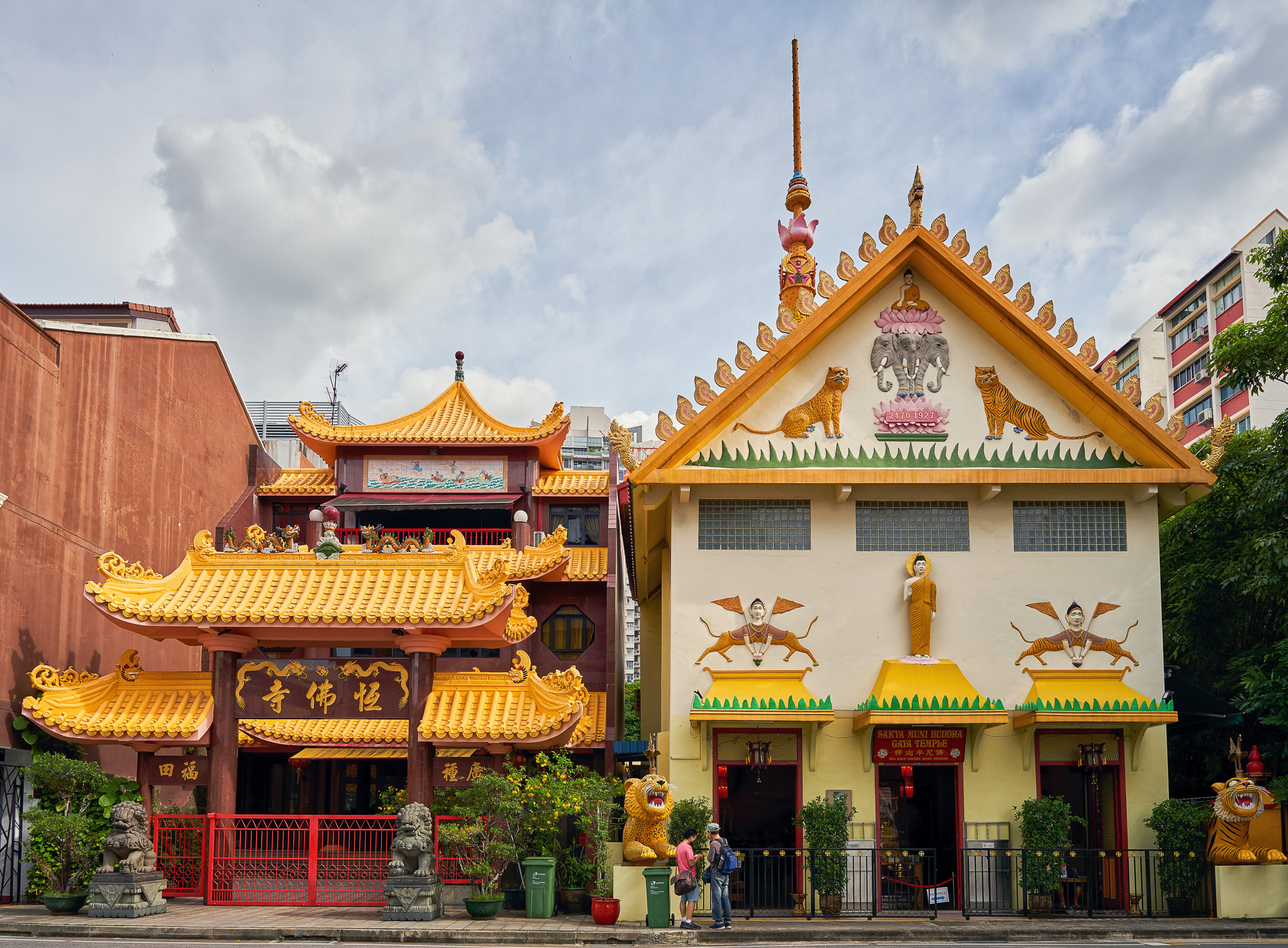 A woman pouring warm fragrant water over a baby buddha statue as part of the “Bathing of the Buddha” ritual on the Vesak Day celebrations at Bugis, Singapore