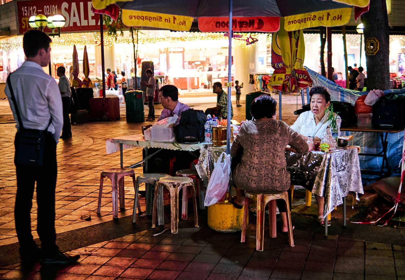 A street vendor has a few snake specimen and pictures on display and promoting his medicine product, apparently made from snakes. Bencoolen Street, Singapore