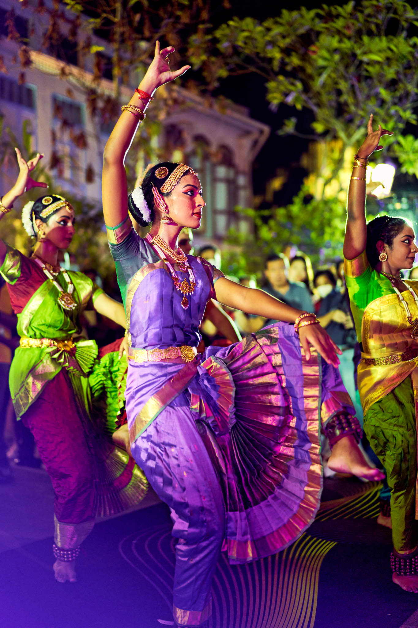 Indian Classical dancers putting up a traditional Indian dance show for the Night Festival at Armenian Street, Singapore
